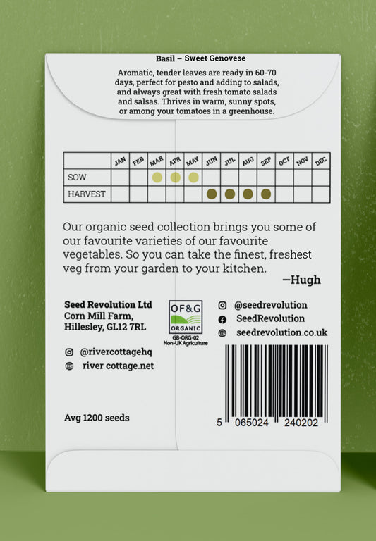 River Cottage Organic Veg Seeds - Basil - Sweet Genovese