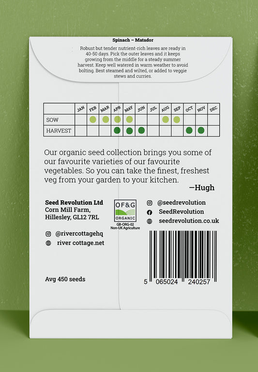 River Cottage Organic Veg Seeds - Spinach - Matador