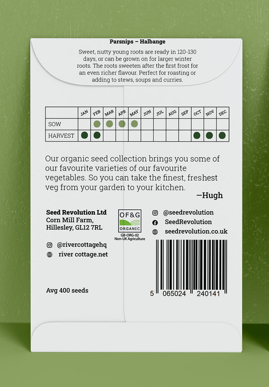 River Cottage Organic Veg Seeds - Parsnips - Halblange