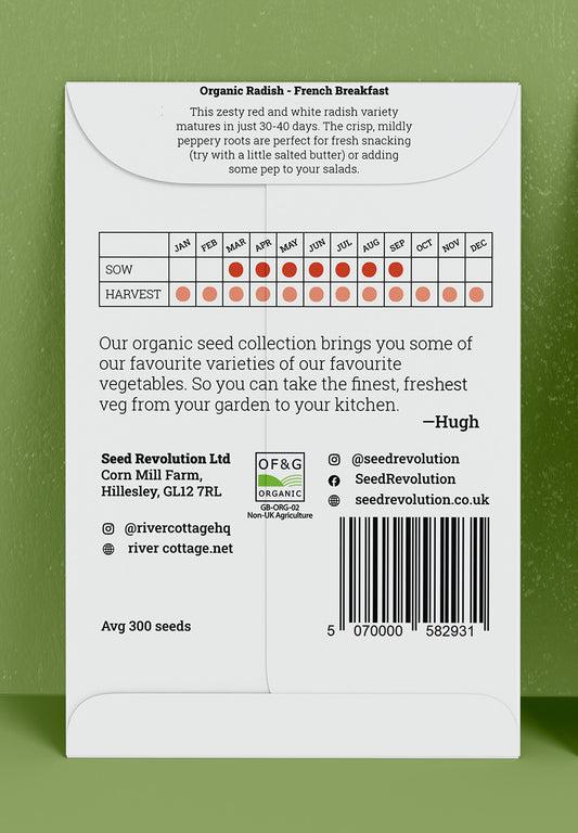 River Cottage Organic Veg Seeds Radish - French Breakfast