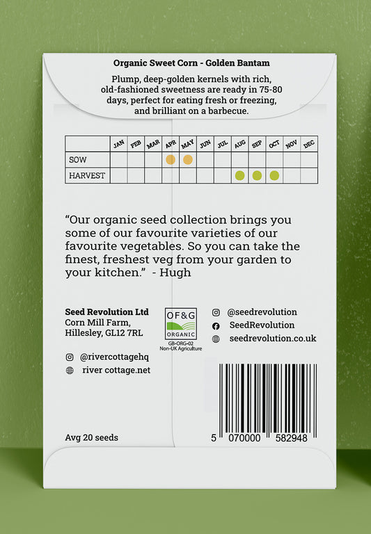 River Cottage Organic Veg Seeds - Sweet Corn - Golden Bantam